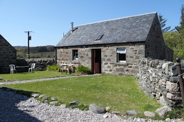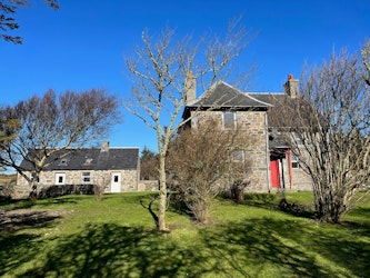The Lodge consists of a Victorian former gamekeeper’s house and traditional stone bothies, along with a newly built self-contained bothy. In total, the site accommodates up to 18 guests across three separate buildings. Set within an enclosed garden bordered by open fields, the Lodge garden enjoys lovely views towards the hills and makes an excellent place for children to play.