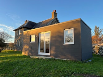 Opposite the main house, the separate dining bothy provides additional cooking, dining and relaxation space for up to 16 guests. There is also a shower block available for all guests to use.
