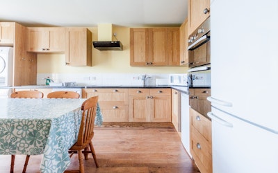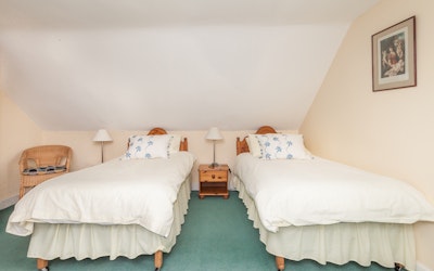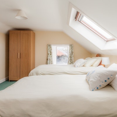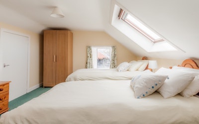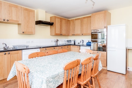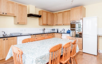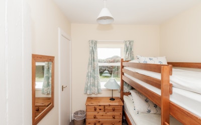 On the ground floor there is a large kitchen/dining room, a sitting room with a wood/coal burning stove, two twin bedrooms (one with bunks) and a bathroom with a shower.