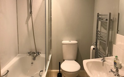 The apartment has a good size double bedroom and a full bathroom. It also has a separate utility area with sink and washing machine.