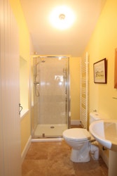 On the ground floor there is a sitting room with an open fire, a good sized dining room, kitchen with a Rayburn (which also boosts the water), one double room with ensuite bathroom, one twin bedroom and a bathroom utility room with a shower.