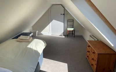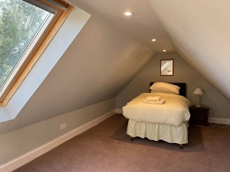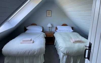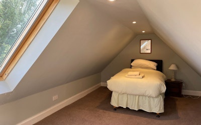 On the first floor there is a twin room, bathroom and 2 single adjoining attic rooms suitable for children. There is also a snug on the landing for children to gather in for games or to watch a movie.