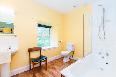 On the ground floor there is a sitting room with an open fire, a kitchen, a dining room/study with a sofa bed, bathroom with a shower and a utility room with another toilet.