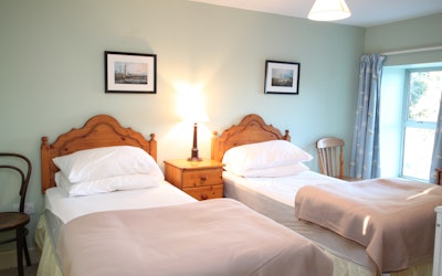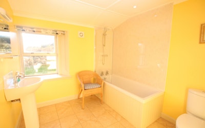 This very comfortable traditional farmhouse boasts 4 bedrooms and 4 bathrooms, 3 en suite. The house has been extensively renovated and has oil fired central heating. It is conveniently located down a short track and is close to the hotel, with the shop and harbour just a 10 min walk away. It is south facing, in an open sunny position, with extensive countryside views. FREE WIFI.