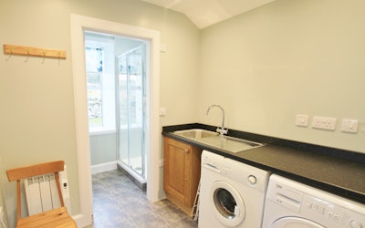 This house has a spacious sitting room with open fire and back boiler on the ground floor. The house has a large kitchen with harbour views. There is a utility room and an additional bathroom with walk in shower adjacent to the kitchen.